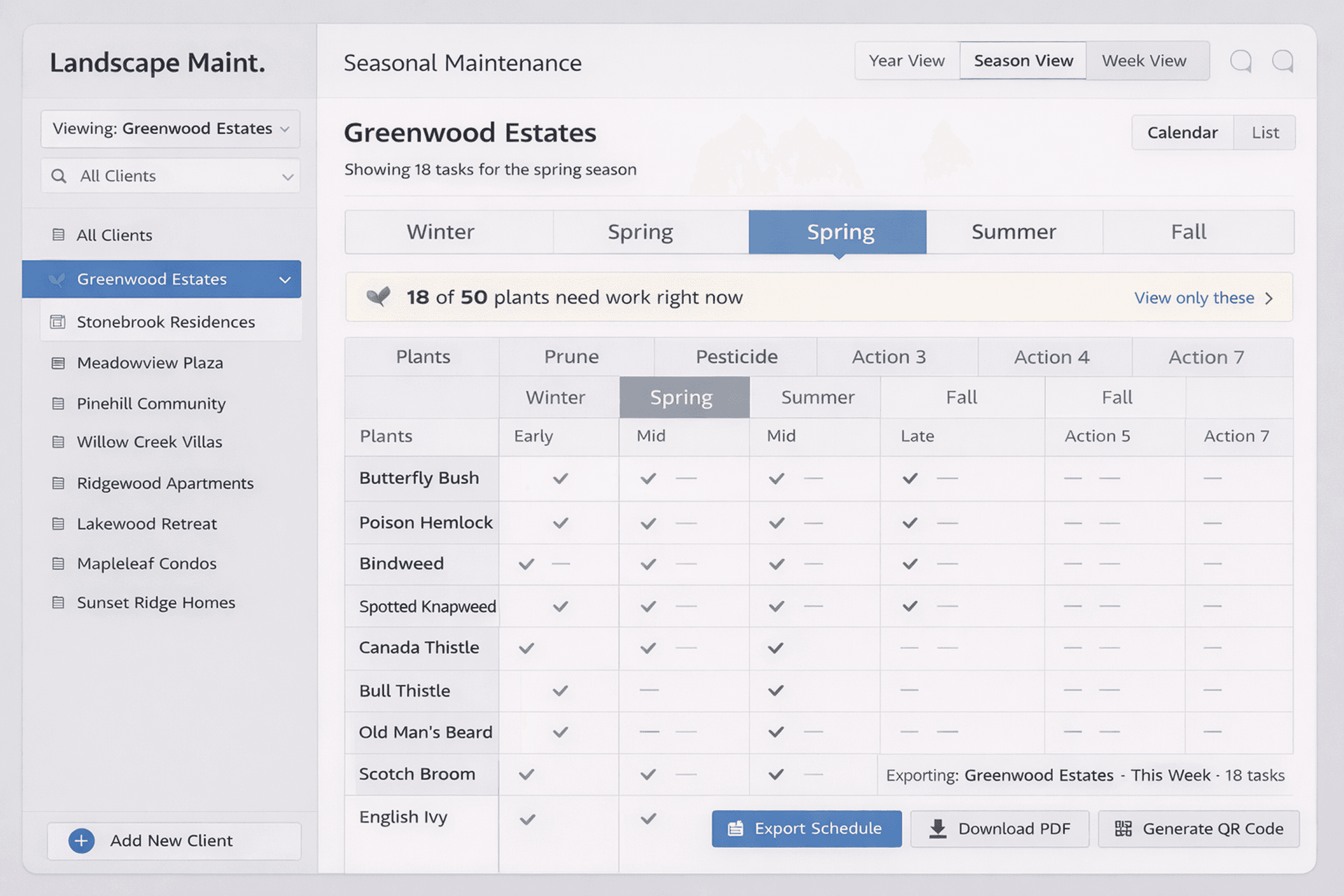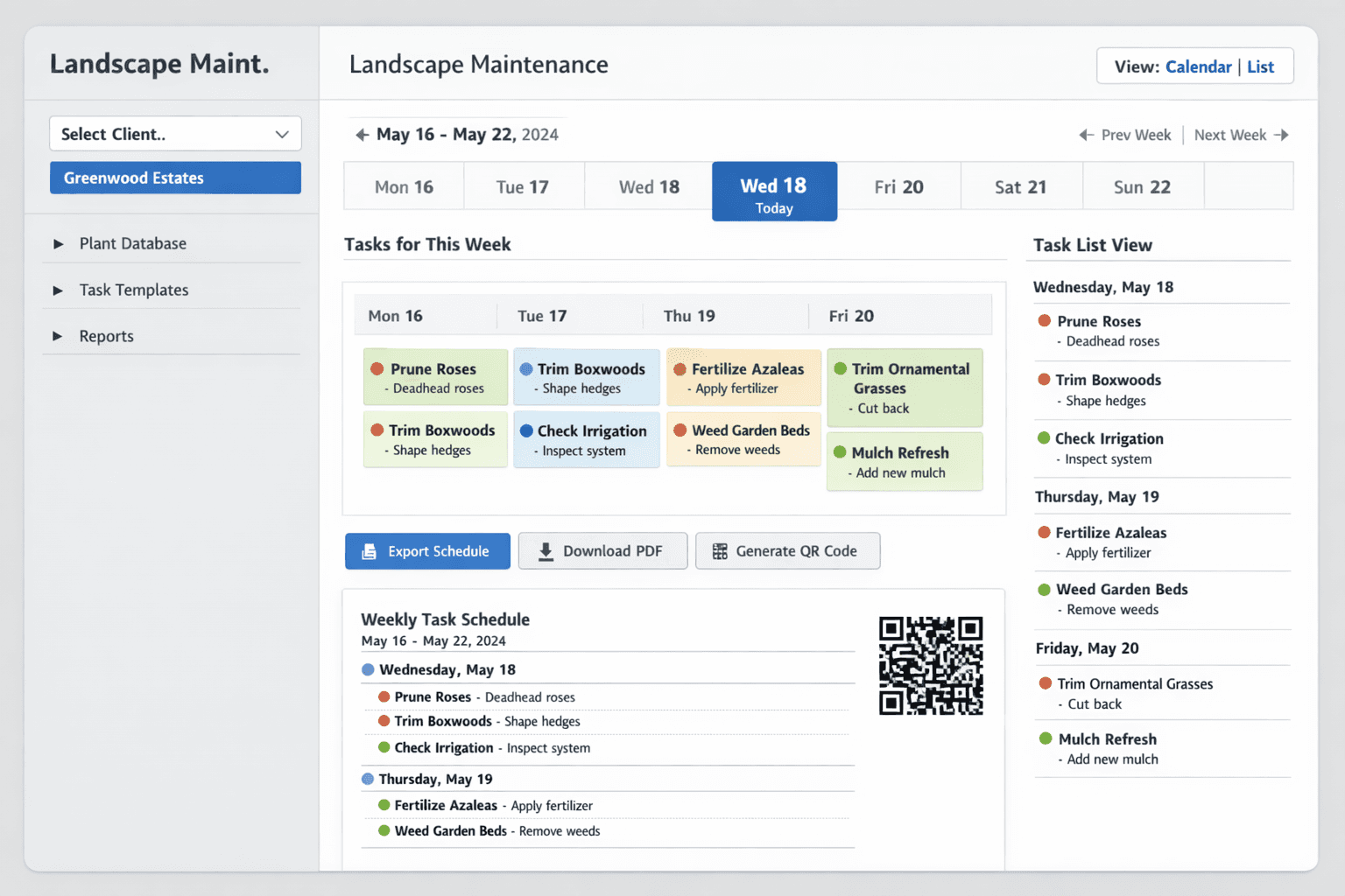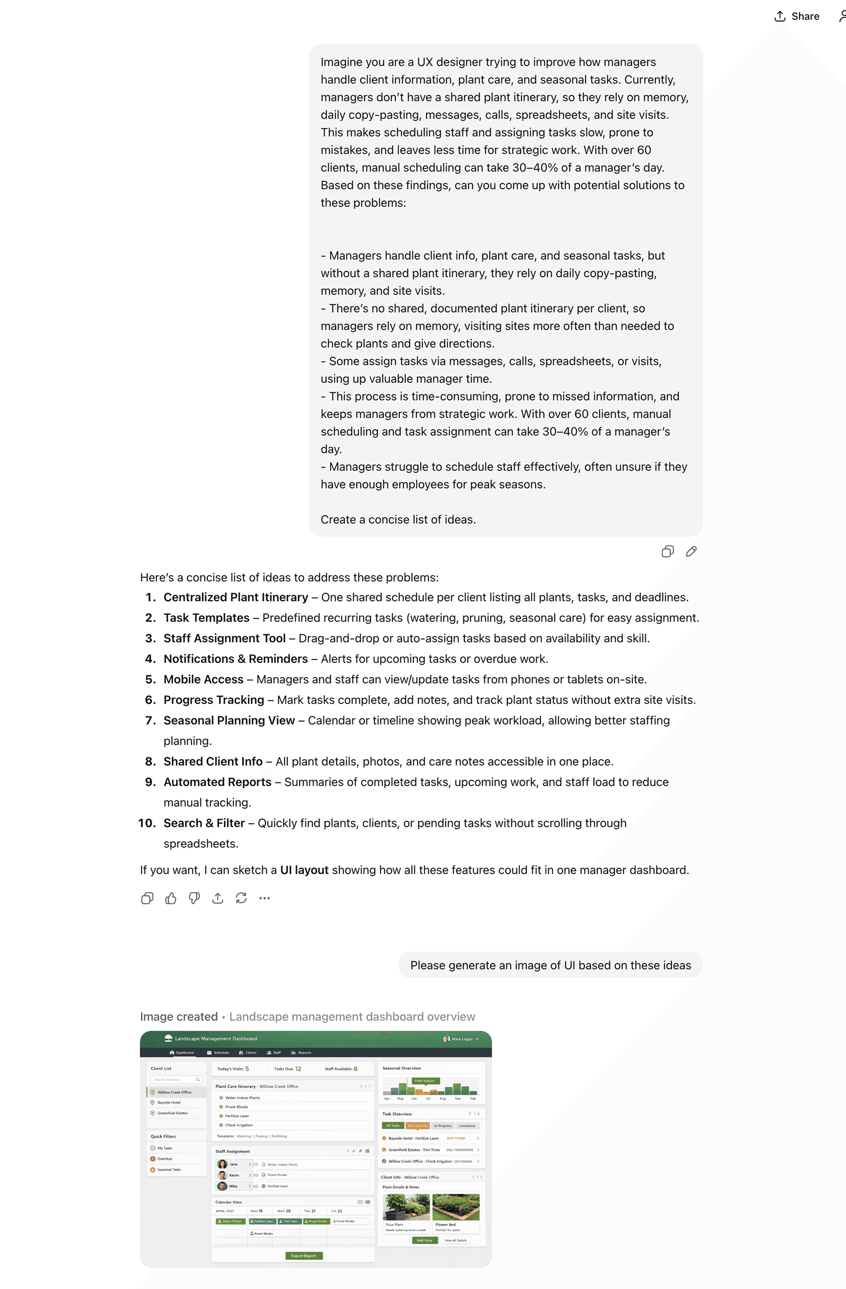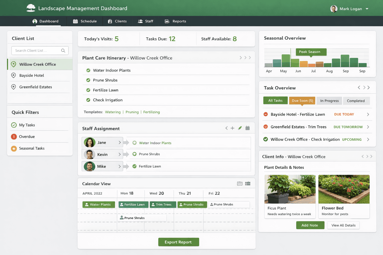 Managers handle client info, plant care, and seasonal tasks, but without a shared plant itinerary, they rely on daily copy-pasting, memory, and site visits.