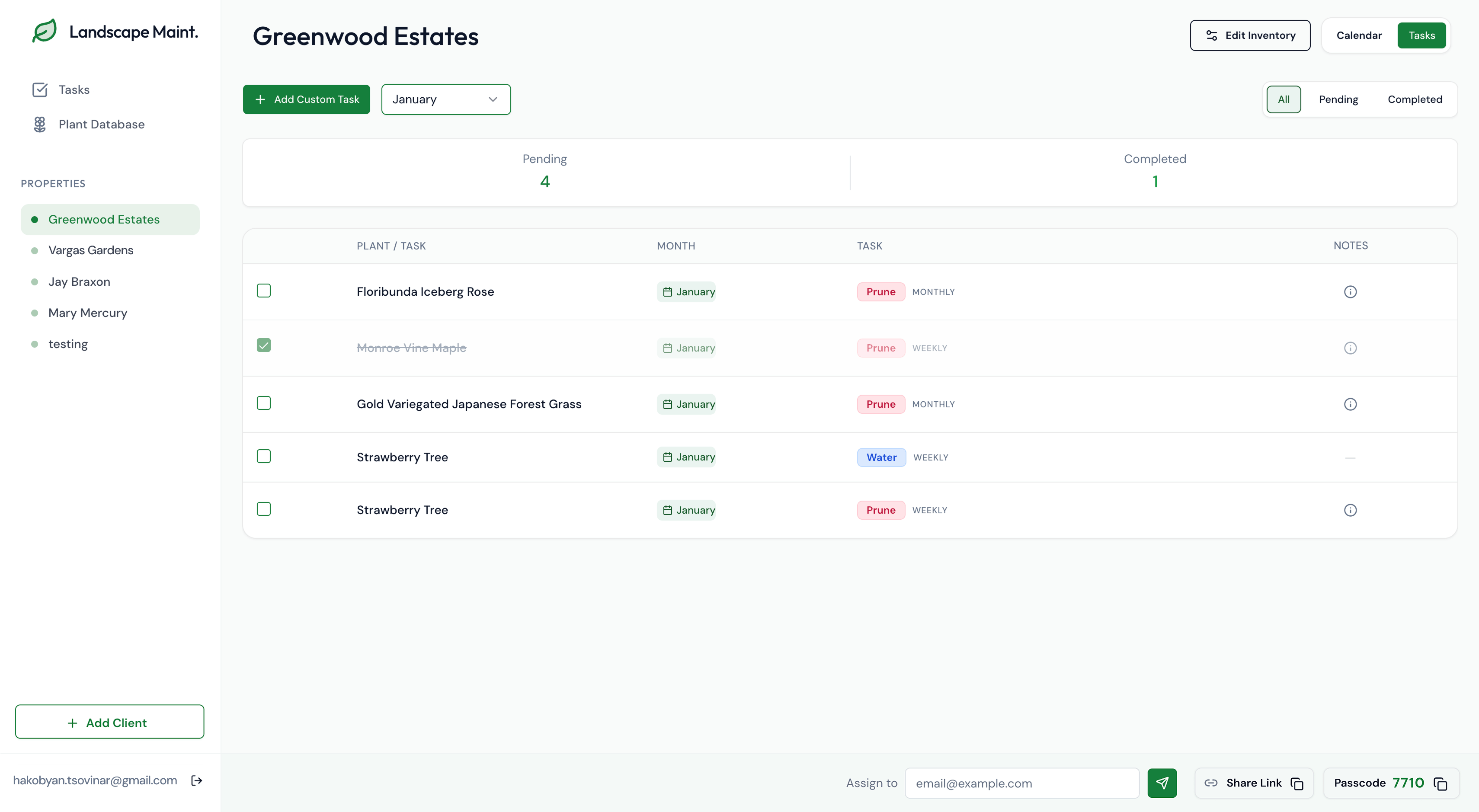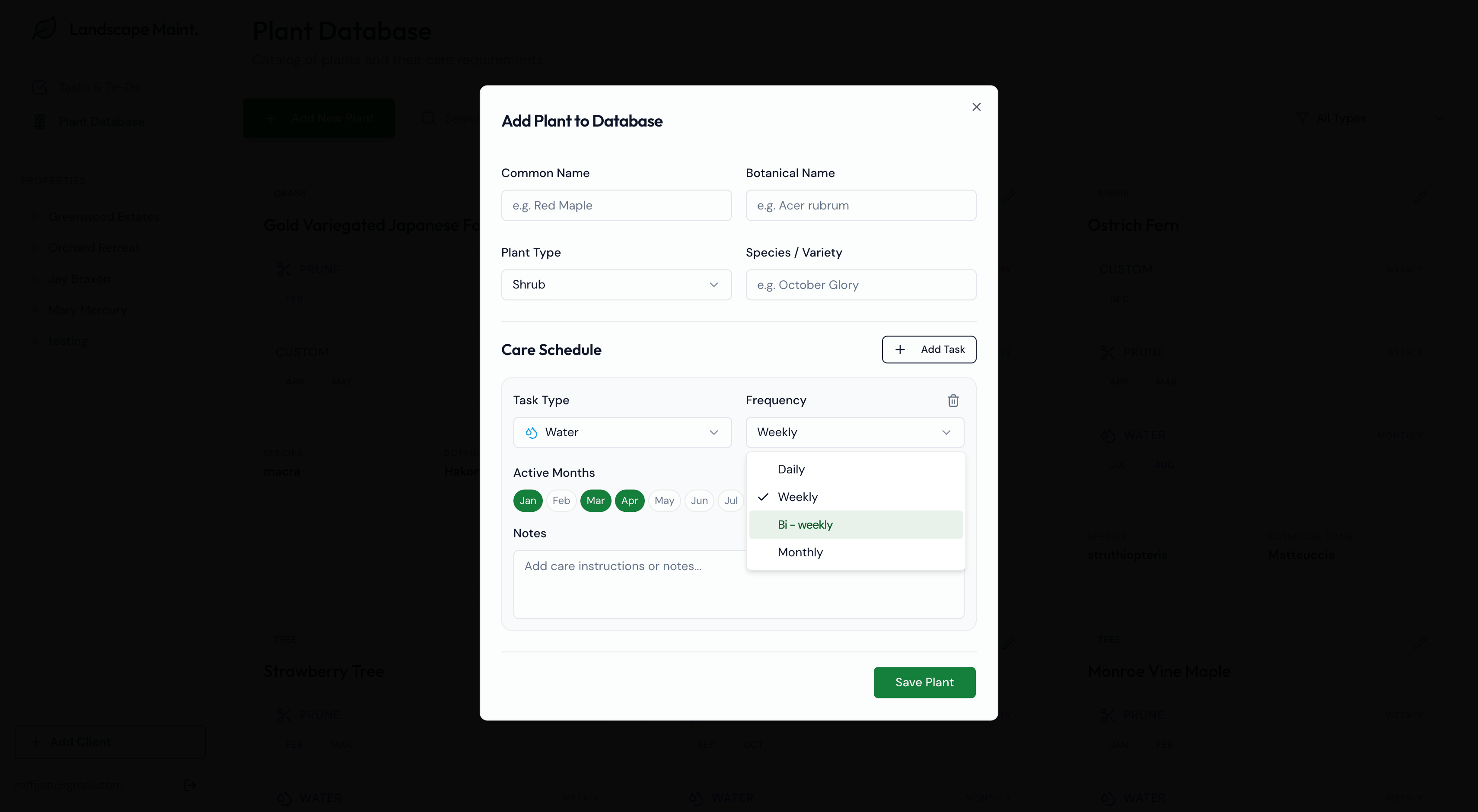 Plant care needs more flexibility. Right now, monthly tasks are auto-generated from preset plant care based on the season. This pushes the product toward a gardening calendar. The new direction shifts it into a garden management app by allowing managers to add custom tasks, like one-off client requests.