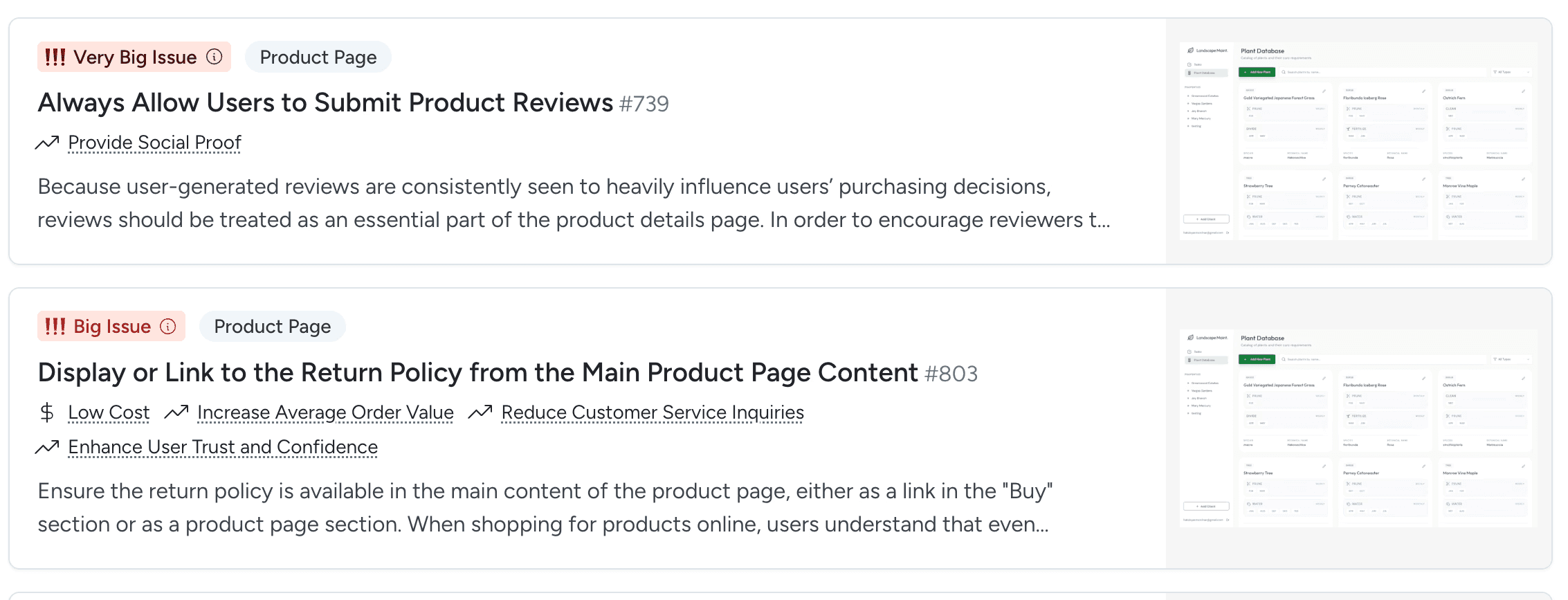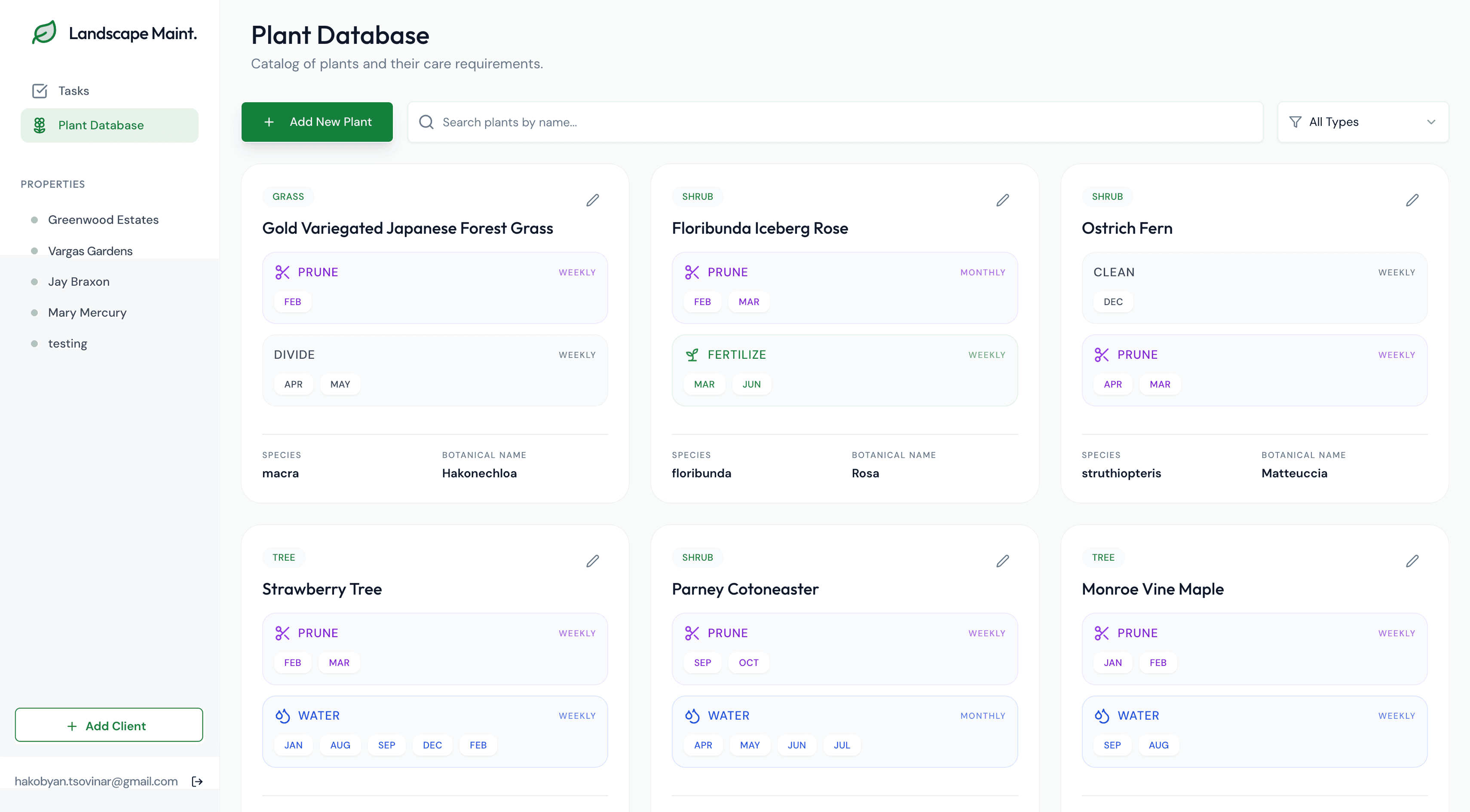 Plant Database: This shows all plants across all properties. You can add new plants or edit existing ones here. In the final version, we’ll add a list view, like a spreadsheet, which will make it easier to scan.