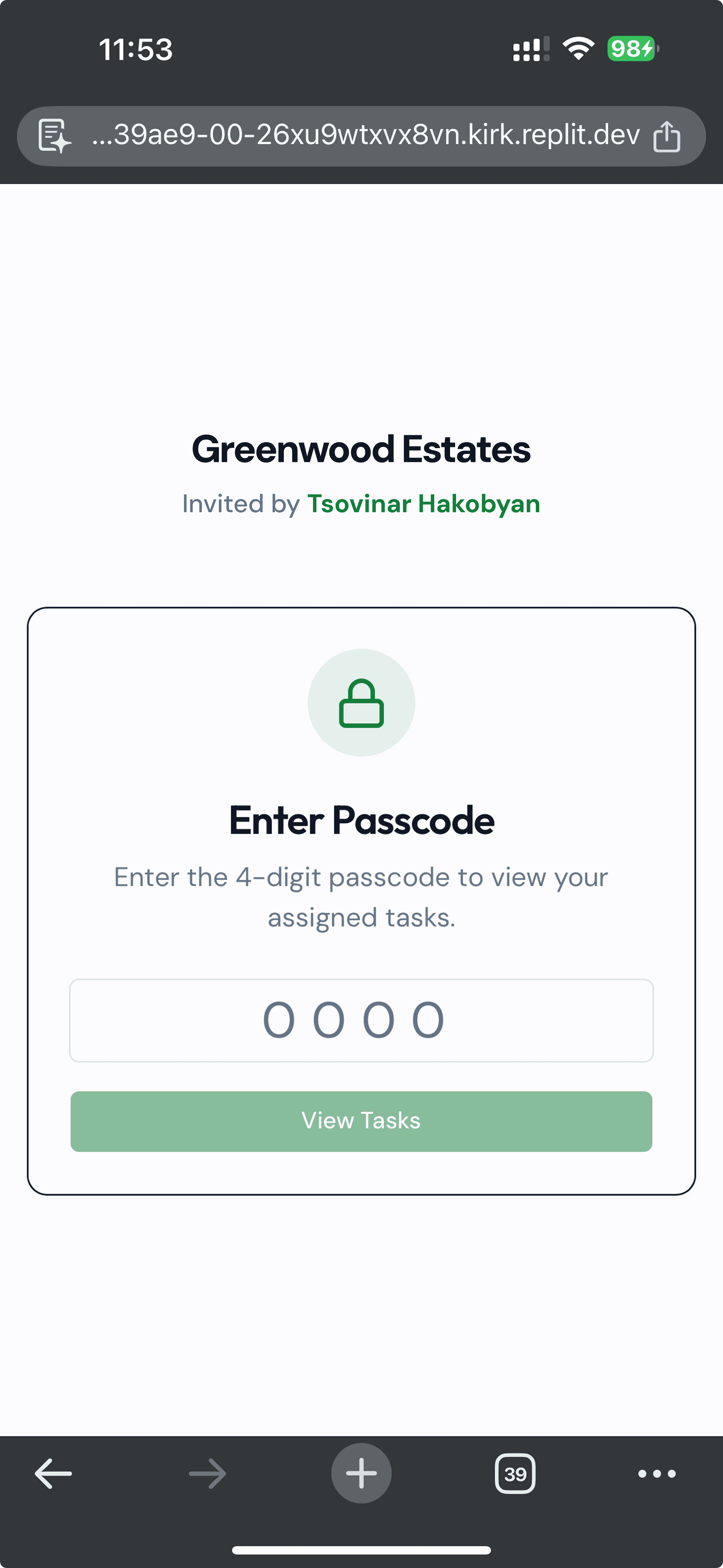 Task View: One important thing I wanted to test was how managers communicate tasks with the crew. To keep it simple, each property automatically generates a passcode. Managers can share the link or email the page along with the passcode, so crew members don’t have to log into a complicated app.