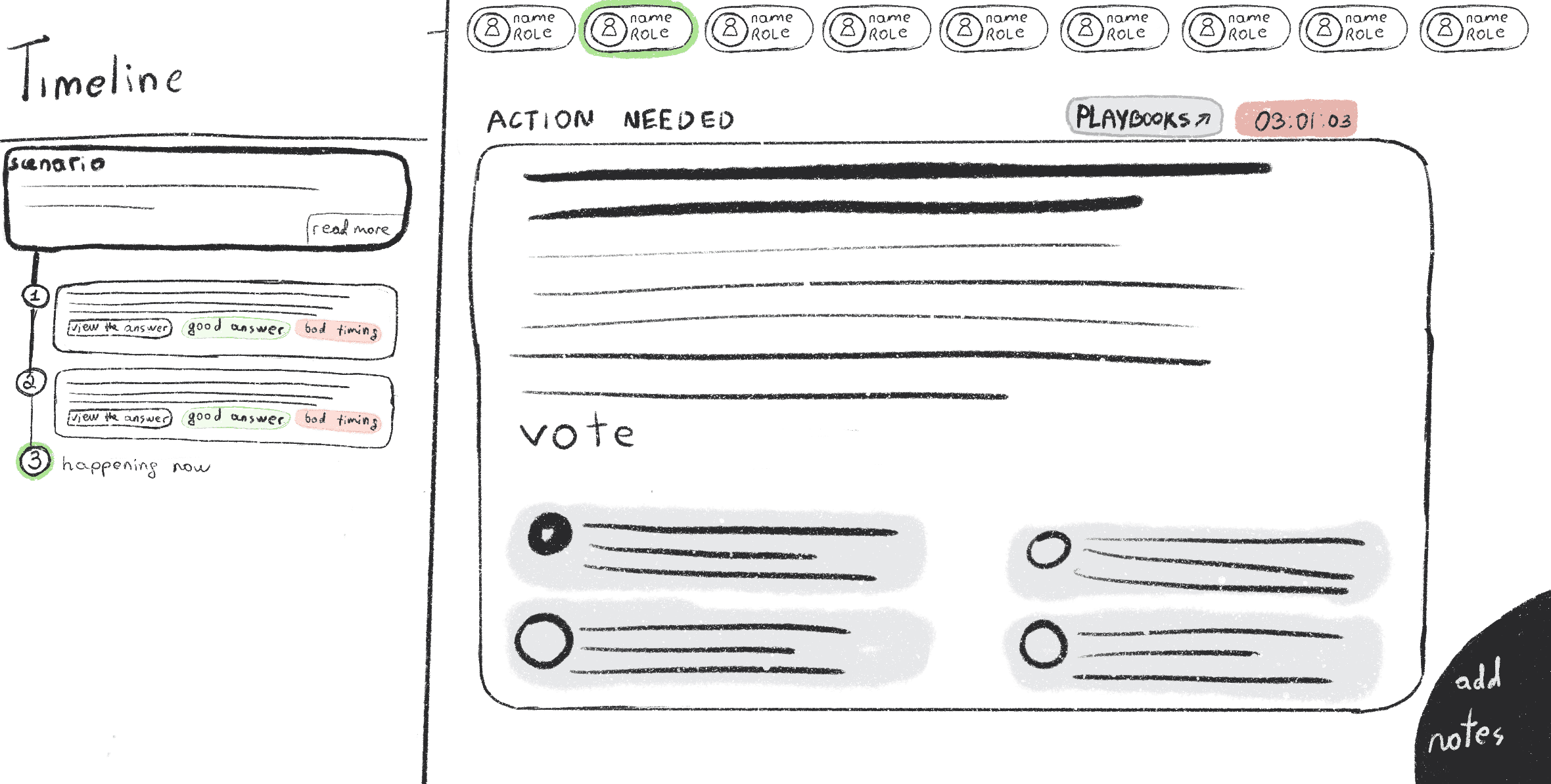 We started with broad questions about the purpose and goals of TTX, then moved into specific challenges and pain points. We didn’t stop interviewing, even while sketching ideas, each round helped us test or adjust what we were thinking.