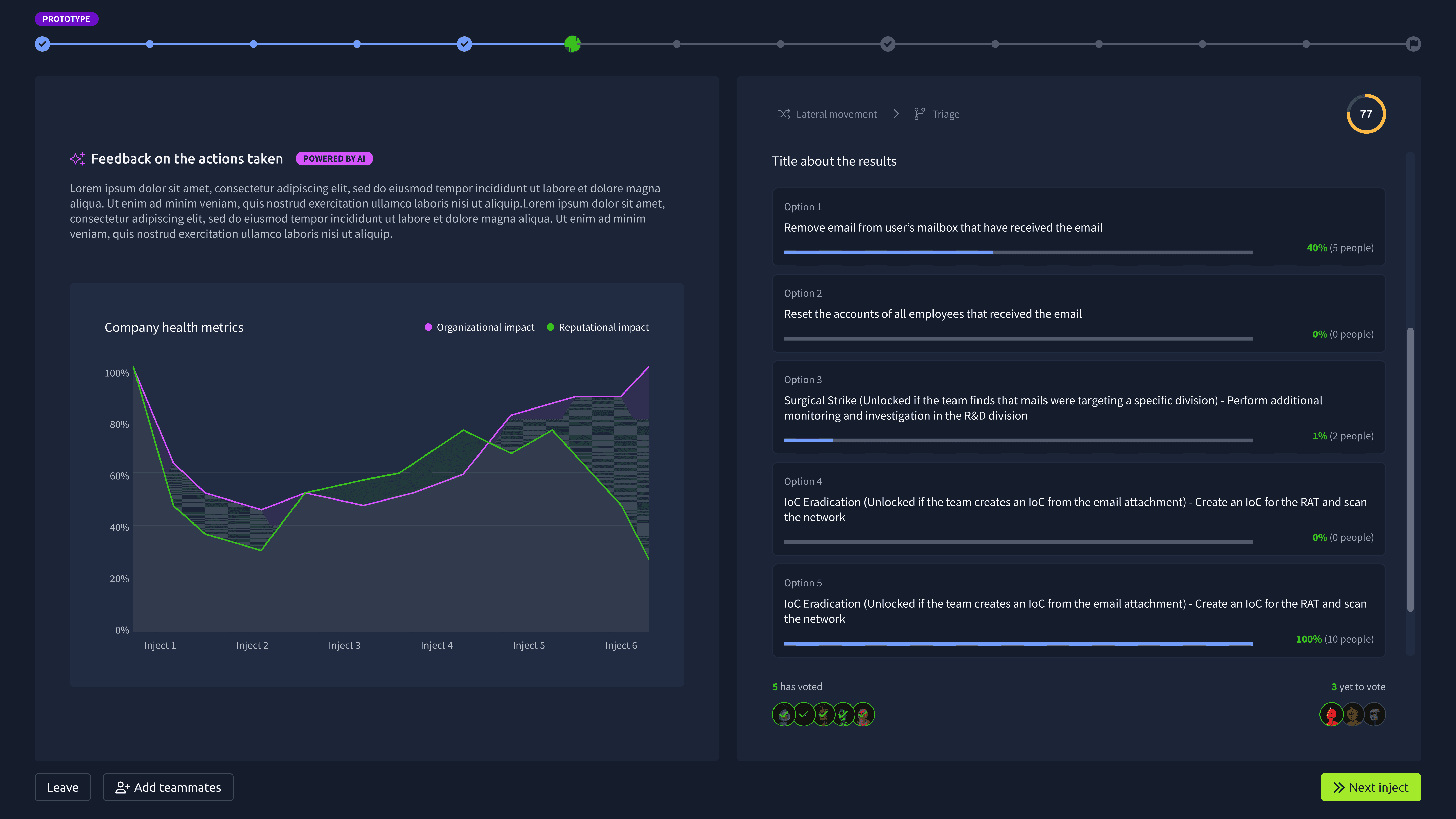 Vote results & instant feedback: Once everyone votes, they see how their choices affected the exercise in real time.