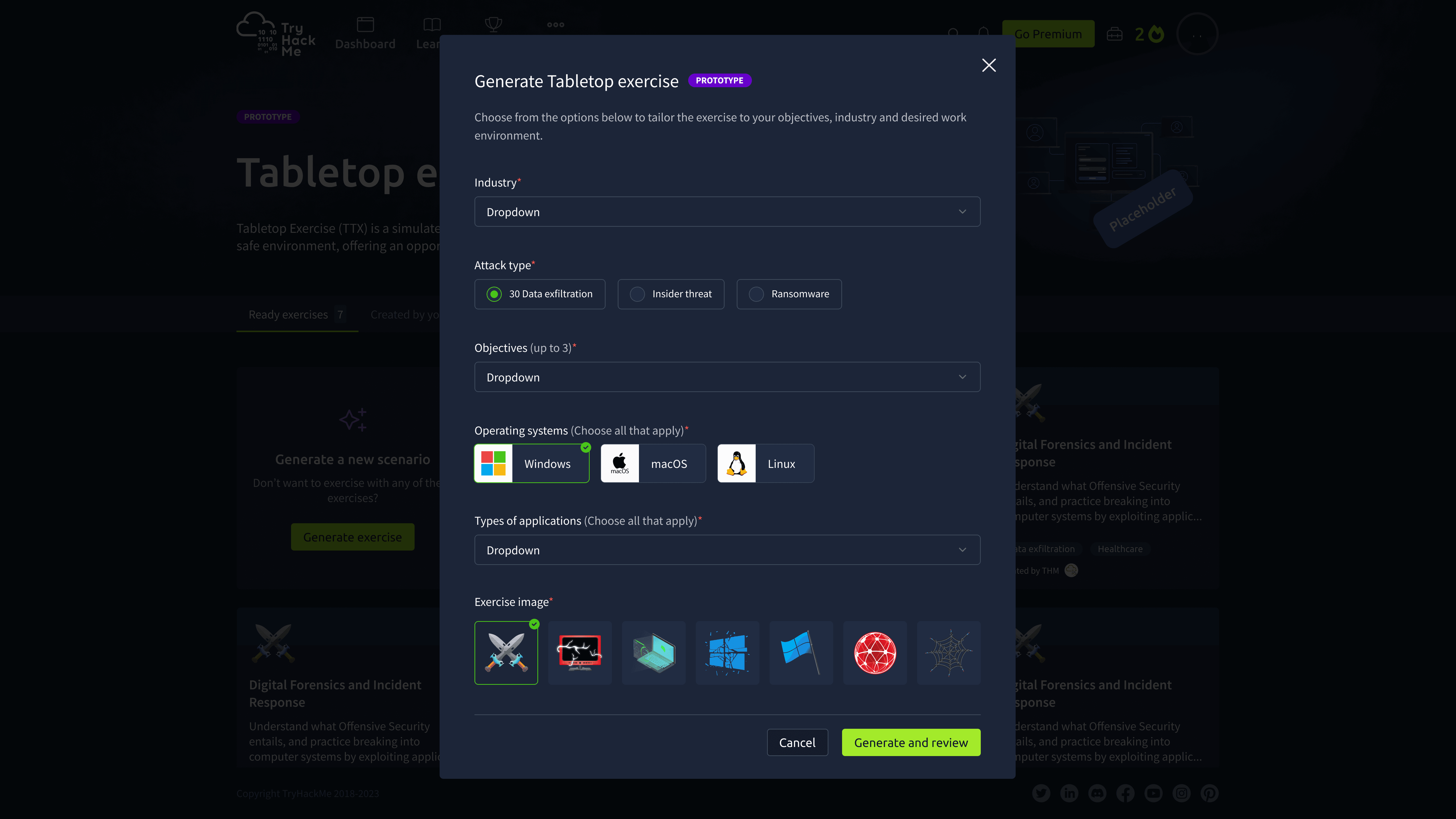 Scenario Generation: To generate a custom scenario, the TTX initiator answers a few questions, which the AI uses to create it.